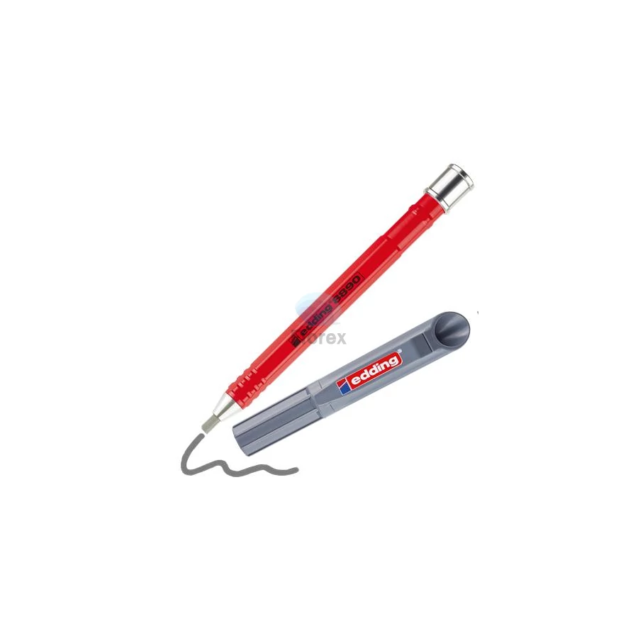 Mechanikus ácsceruza praktikus védő tokban különböző felületek, mint pl. fa, karton, kő vagy beton jelölésére.