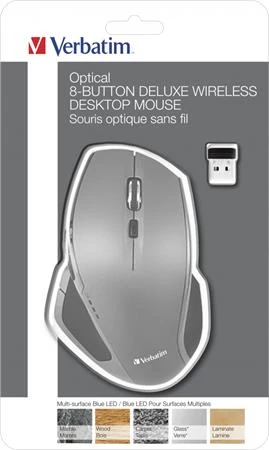 Egér, vezeték nélküli, lézeres, normál méret, kék LED, VERBATIM "DELUXE", szürke