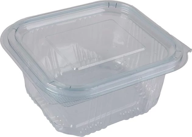 Ételtároló doboz, egybefedeles, műanyag, szögletes, 500 ml, 100 db, "Party", víztiszta