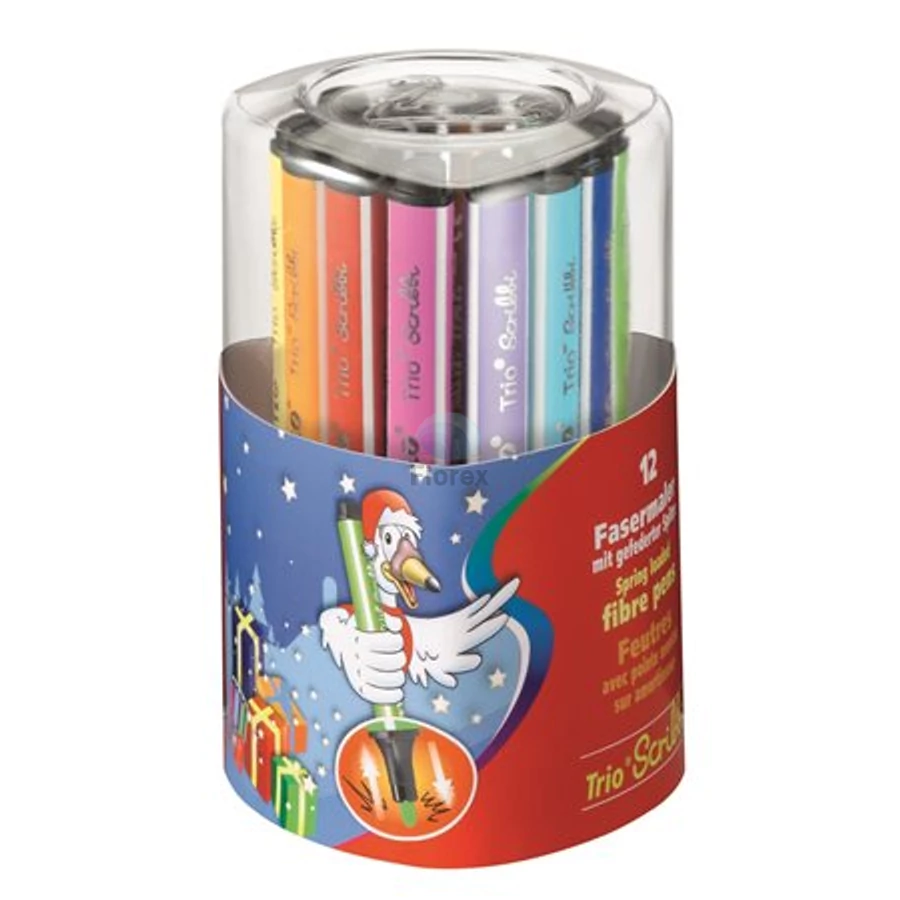 Filctoll készlet, 1,5-2 mm, rugós hegy, STABILO Trio Scribbi, 12 különböző szín