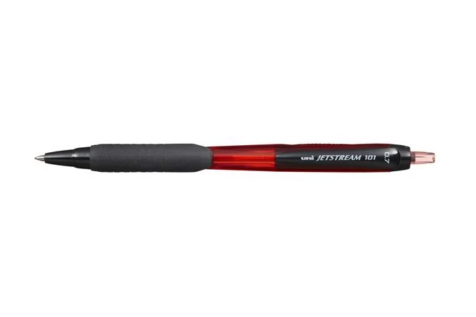 Golyóstoll, 0,35 mm, nyomógombos, fehér tolltest, UNI "SXN-155 Jetstream", piros