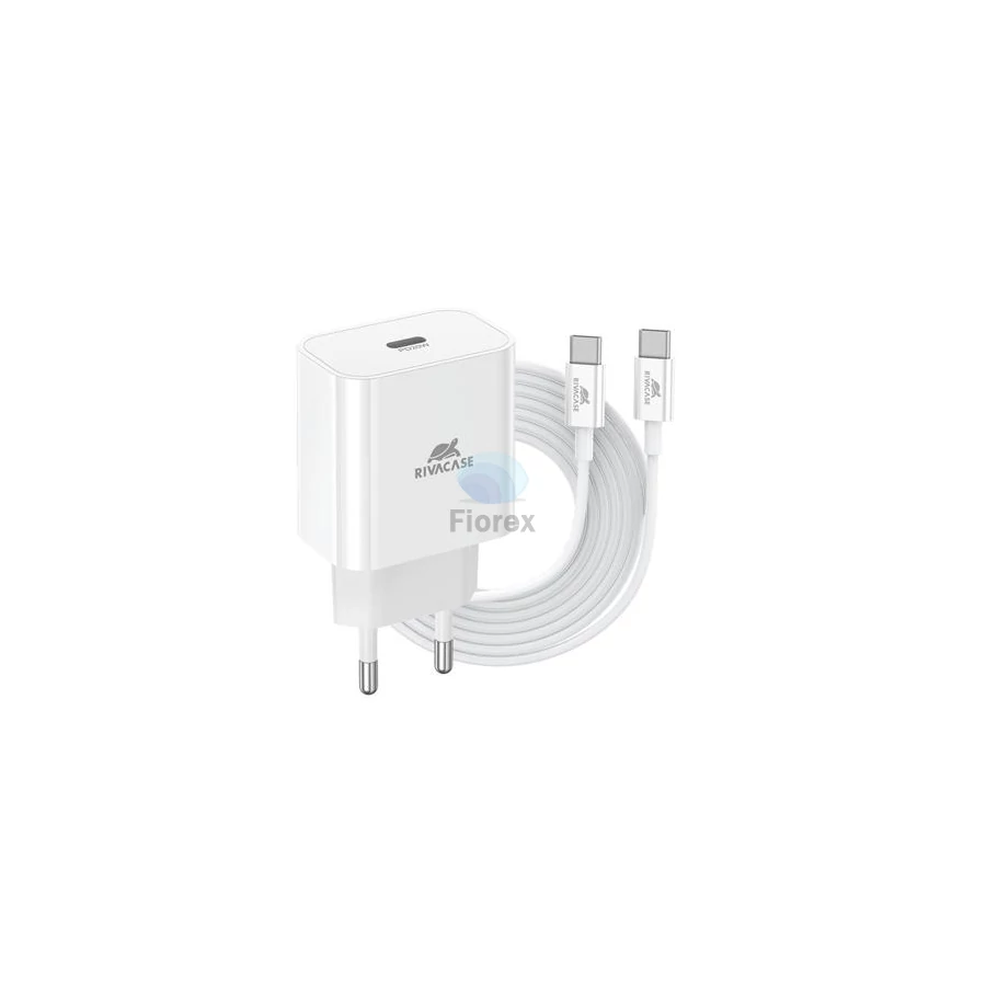 Hálózati töltő, 20W, USB-C, USB-C, USB-C/USB-C töltőkábel, RIVACASE "PS4101", fehér