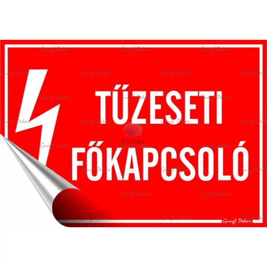 Információs matrica, 11,6x16,6 cm, "Tűzeseti főkapcsoló"