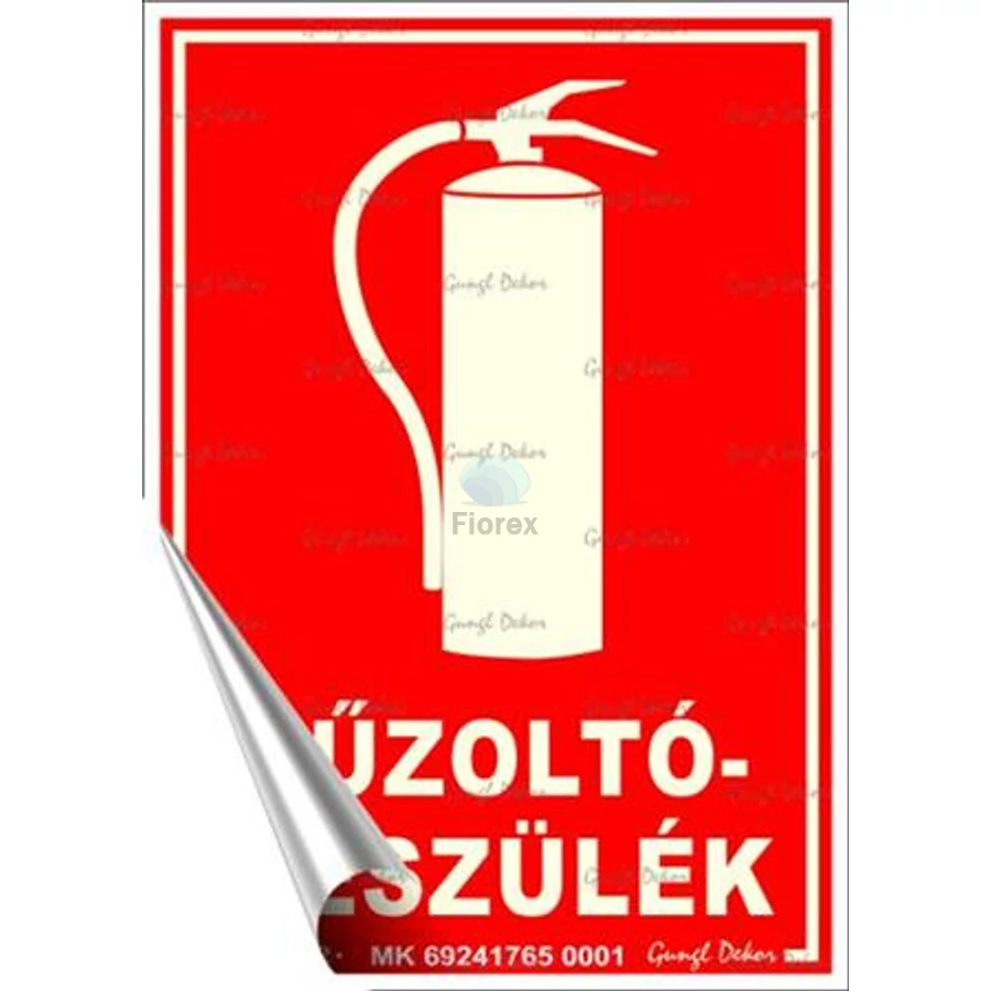 Információs matrica, 12,5x17,5 cm, fluoreszkáló, utánvilágítós, "Tűzoltókészülék"