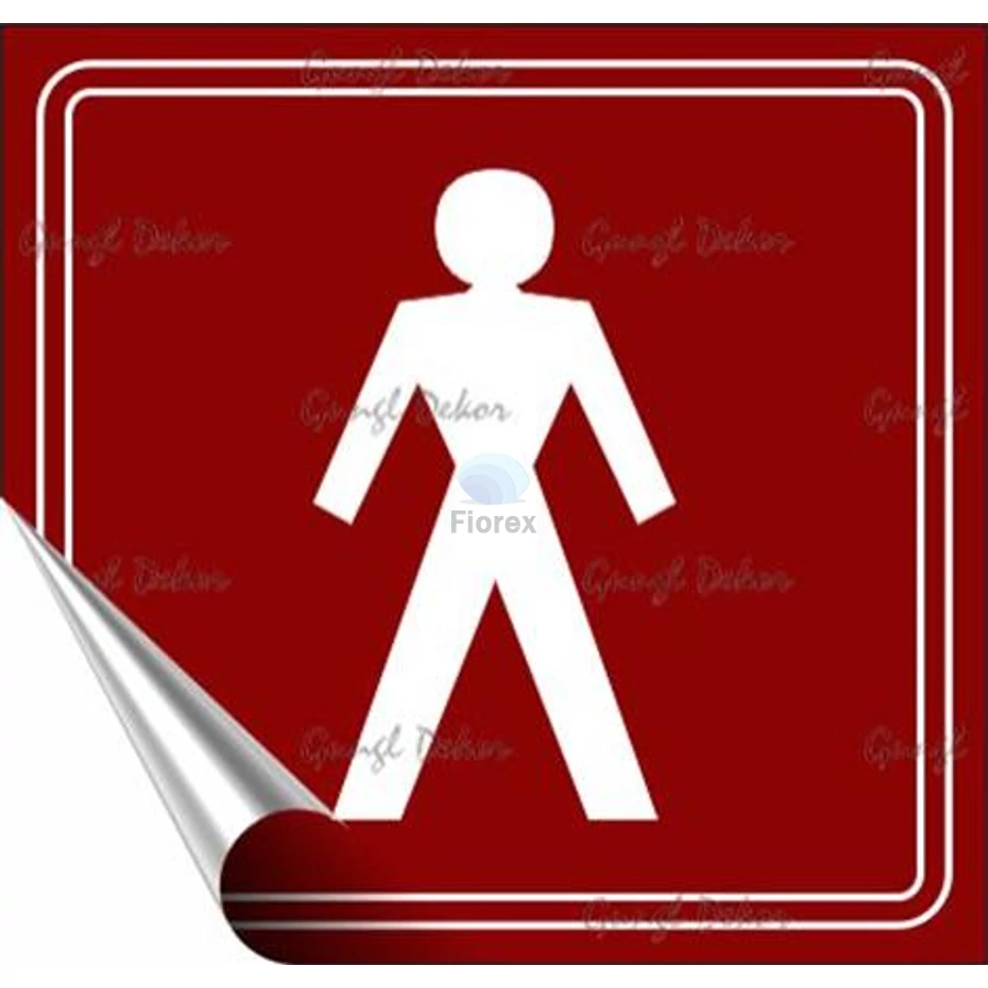 Információs matrica, 8,7x8,3 cm, toalett, férfi szimbólum, burgundi vörös/fehér