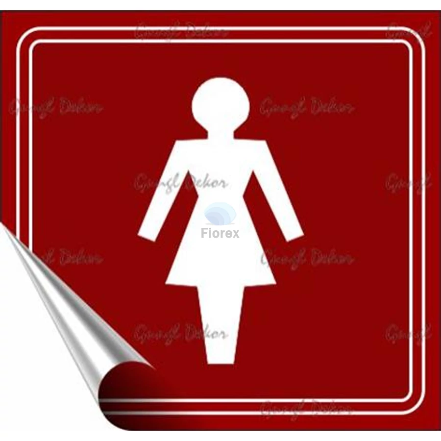 Információs matrica, 8,7x8,3 cm, toalett, női szimbólum, burgundi vörös/fehér
