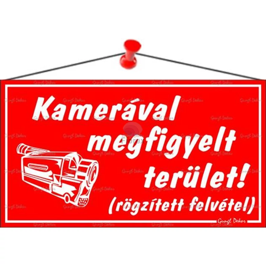 Információs tábla, 22,5x12,5 cm, "Kamerával megfigyelt terület", piros