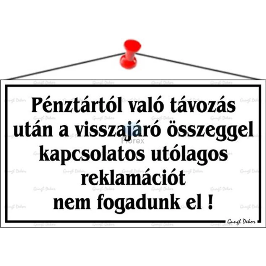 Pénztártól való távozás után reklamációt nem fogadunk el! információs tábla