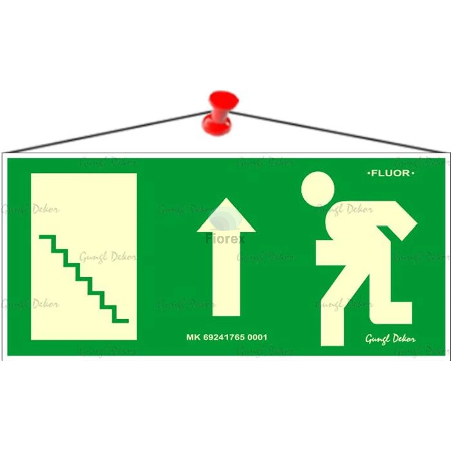 Információs tábla, 25x11,5 cm, fluoreszkáló, utánvilágítós, "Menekülési irány fel, lépcső balra"