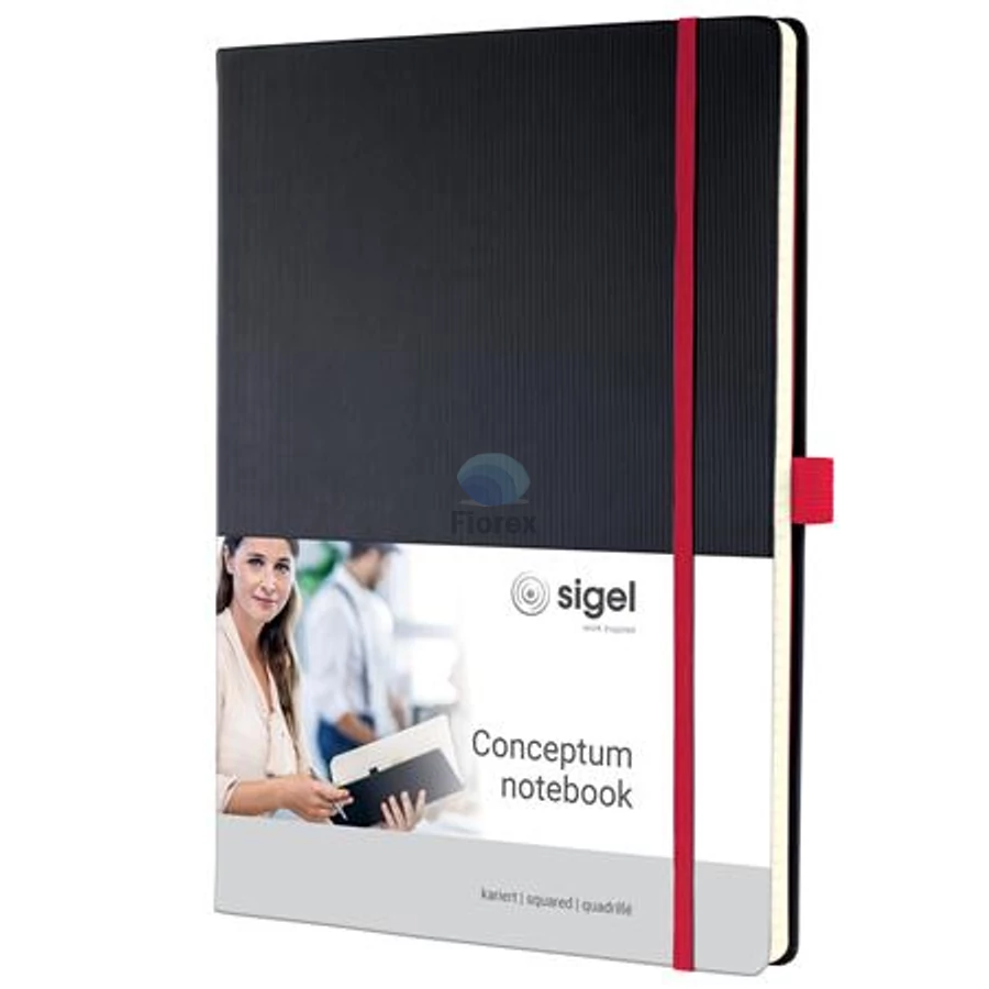 Jegyzetfüzet, exkluzív, A4, kockás, 97 lap, keményfedeles, SIGEL "Conceptum Red Edition", fekete-piros