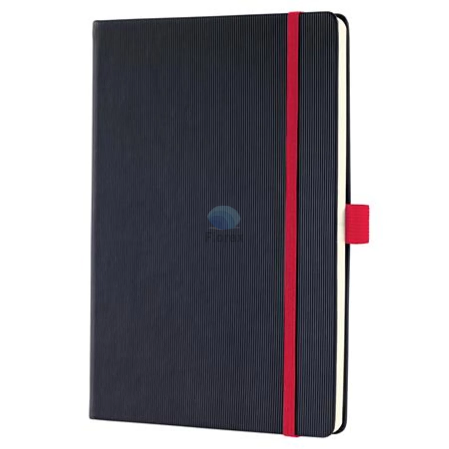 Keményfedeles, klasszikus fekete "Conceptum" jegyzetfüzet piros kiegészítőkkel