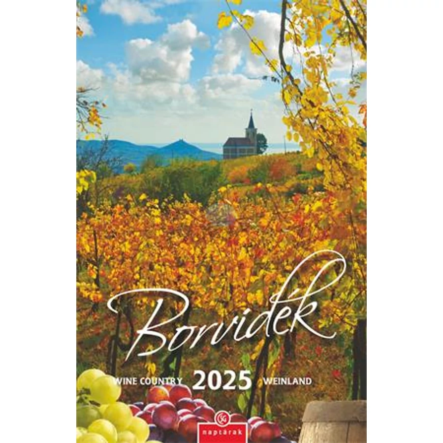 -naptár rész: magyar, angol, német nyelven, magyar  ünnepek  és névnapokkal, napkelte, napnyugta és holdállás  feltüntetésével