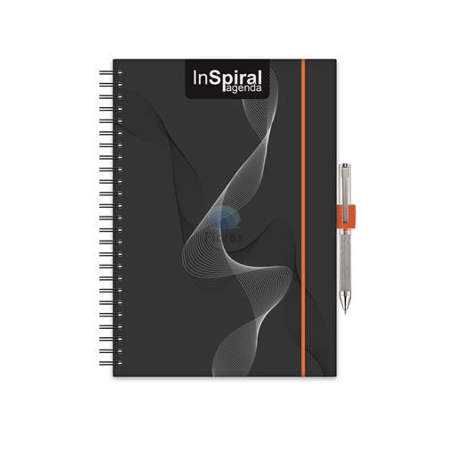 Finom tapintású Soft touch fóliával és UV formalakkal készült agendák, spirálos kivitelben. A tolltartó és az elasztikus zárószalag hasznos részei a terméknek.