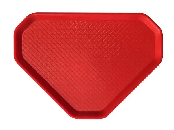 Önkiszolgáló tálca, háromszögletű, műanyag, éttermi, piros, 47,5x34 cm