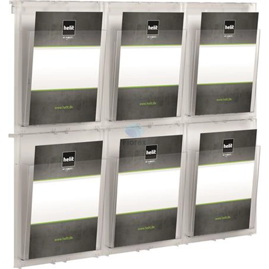 Prospektustartó, fali, A4, 6 rekeszes, HELIT "Placativ", átlátszó