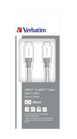 USB kábel, USB-C 3.1 - USB-C, 30 cm, VERBATIM, ezüst
