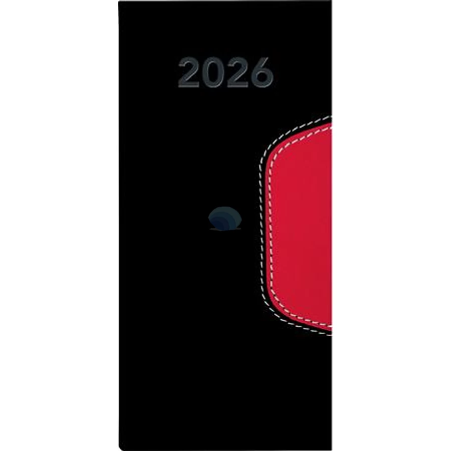 Zsebnaptár, fekvő elrendezésű, DAYLINER, "Memphis", fekete-piros